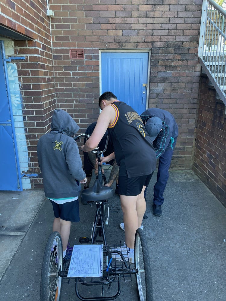 Students work alongside Mr Mat our School Support Officer to maintain our school fleet of bikes and restore and recycle discarded bikes.